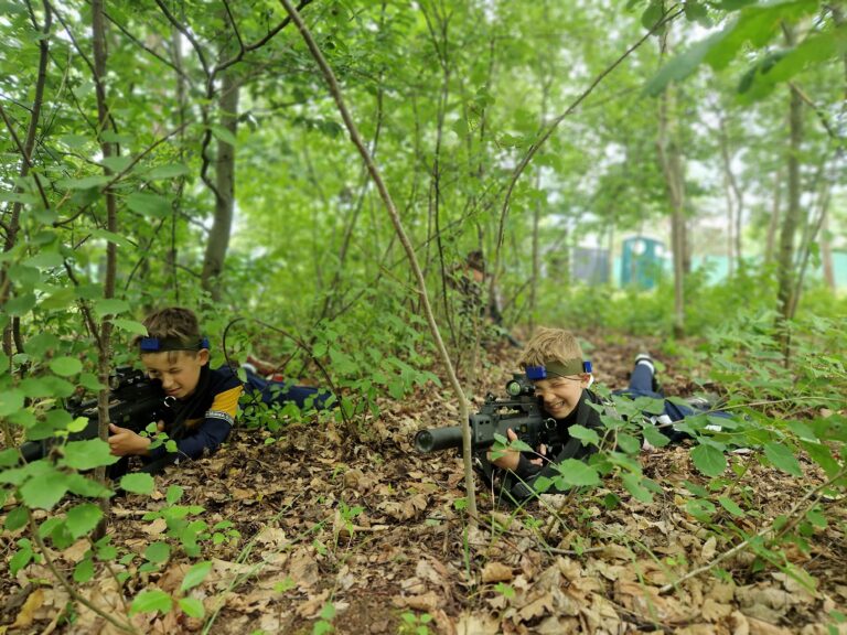 Zapraszamy dzieci już od 8. roku życia. Sprzęt jest lekki i intuicyjny, więc ośmiolatki radzą sobie z nim doskonale. Młodsze dzieci (6-7 lat) też mogą spróbować swoich sił, ale zalecamy to pod opieką dorosłych lub rodzeństwa. Górnej granicy wieku nie ma – bawią się u nas 40-latkowie i seniorzy!